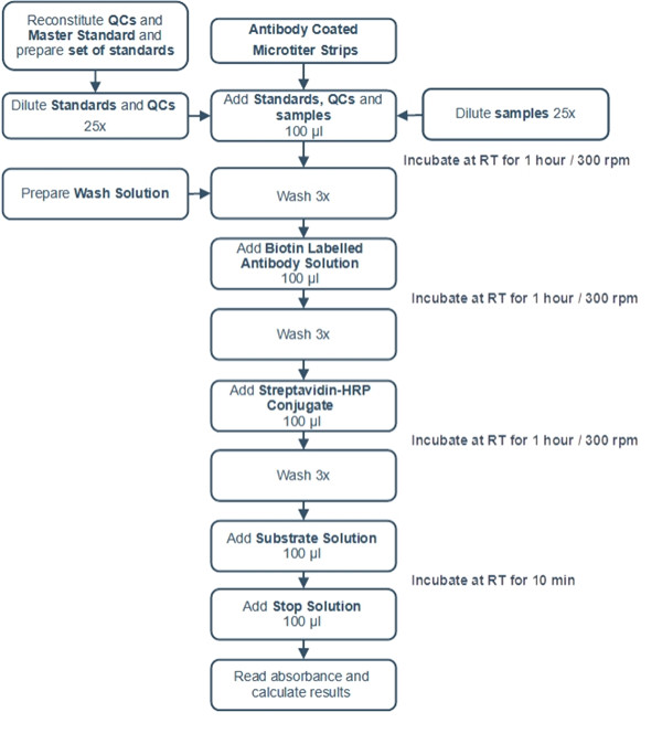 KL-6 ELISA试剂盒基于夹心ELISA技术,采用单克隆抗体作为捕获和检测抗体,专门设计用于定量测定人血清、血浆和支气管肺泡灌洗液(BALF)中的KL-6水平。